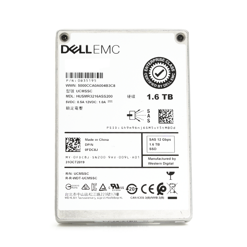 Dell Ultrastar DC SS300 FDC8J HUSMR3216ASS200 1.6TB SAS 12Gb/s 2.5in Recertified Solid State Drive
