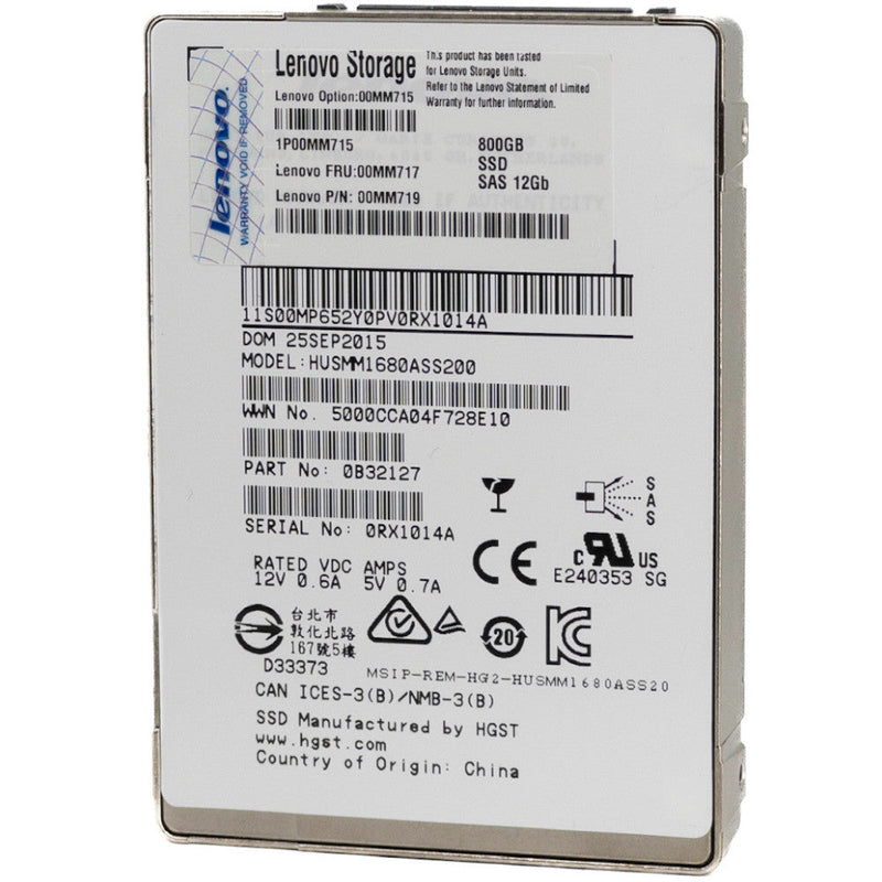Lenovo Ultrastar SSD1600MM HUSMM1680ASS200 00MM719 800GB SAS 12Gb/s Write Intensive MLC 2.5in Refurbished SSD