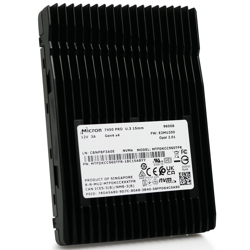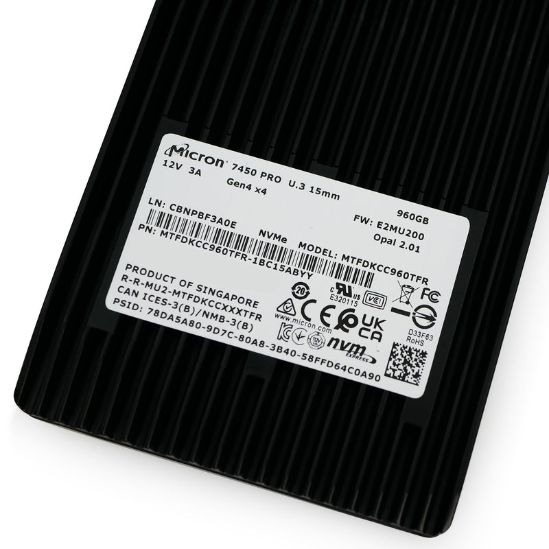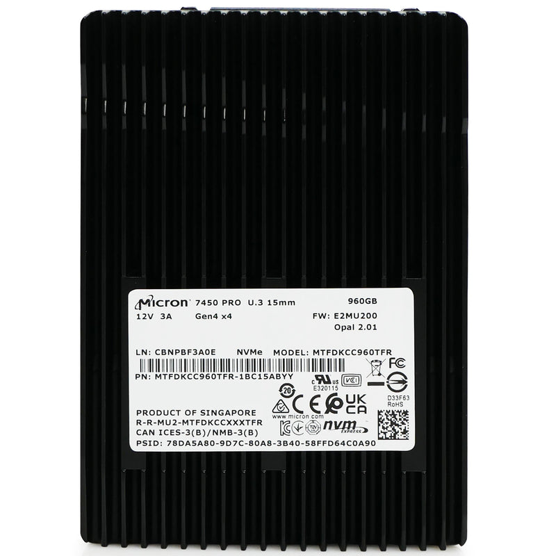 Micron 7450 Pro MTFDKCC960TFR 960GB 1 DWPD Opal 2.01 PCIe Gen 4.0 x4 8GB/s 3D TLC U.3 NVMe 2.5in Solid State Drive