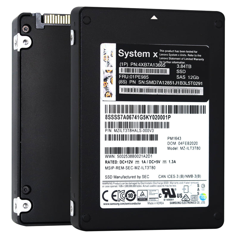 Samsung/Lenovo PM1643 MZILT3T8HALS MZ-ILT3T80 3.84TB SAS 12Gb/s 3D TLC 2.5in Recertified Solid State Drive