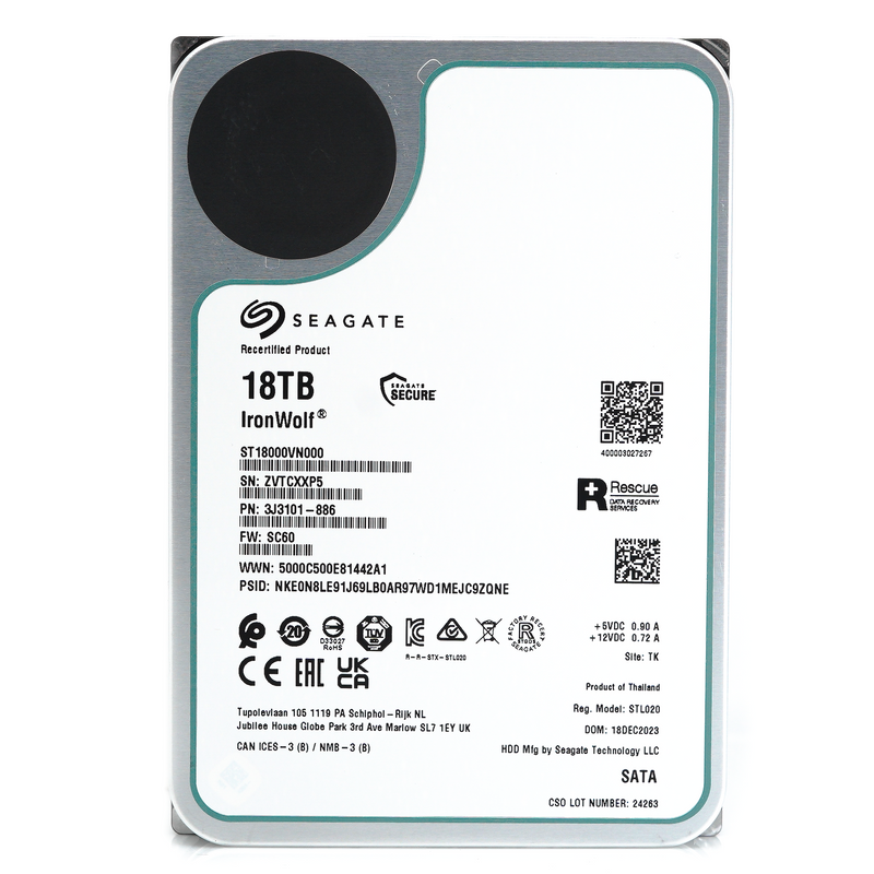 Seagate IronWolf ST18000VN000 18TB 7.2K RPM SATA 6Gb/s 512e CMR NAS 3.5in Recertified Hard Drive