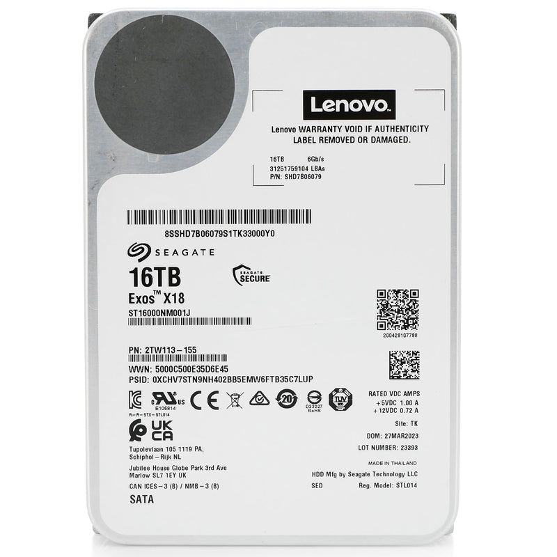 Seagate/Lenovo Exos X18 ST16000NM001J 16TB 7.2K RPM SATA 6Gb/s 512e 3.5in Hard Drive