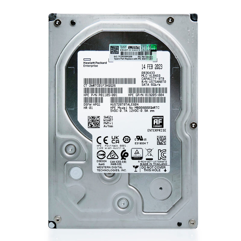 Western Digital/HP Ultrastar DC HC320 HUS728T8TALE604 8TB 7.2K RPM SATA 6Gb/s 512e 3.5in Refurbished HDD