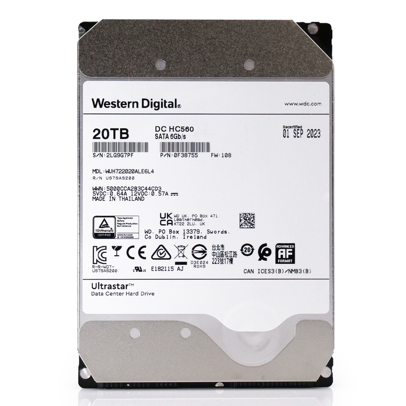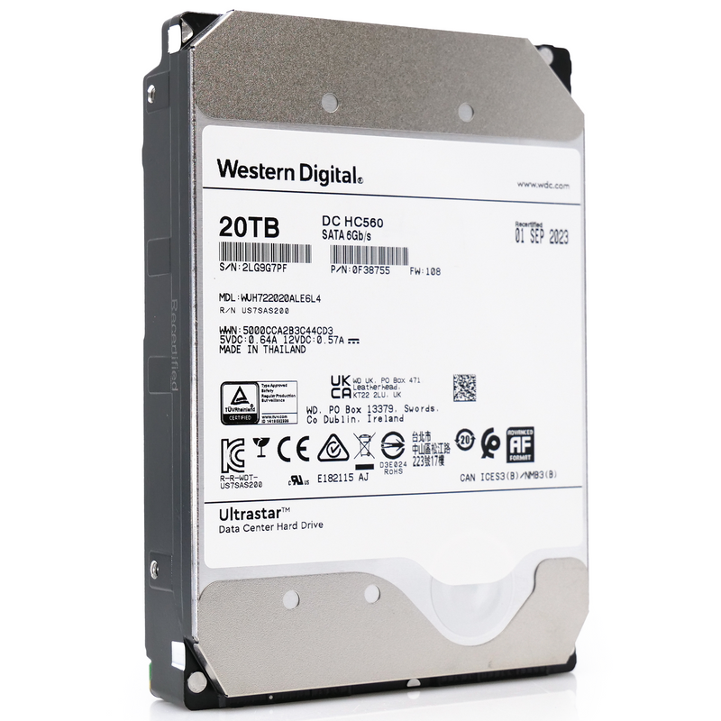 Western Digital Ultrastar DC HC560 WUH722020ALE6L4 20TB 7.2K RPM SATA 6Gb/s 3.5in Recertified Hard Drive