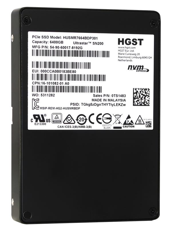 Western Digital Ultrastar DC SN200 HUSMR7664BDP301 0TS1317 6.4TB PCIe Gen 3.0 x4 4GB/s U.2 NVMe 3DWPD MLC 2.5in Solid State Drive